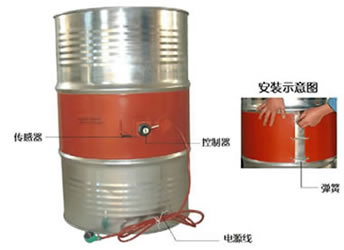 油桶加熱器又稱油桶加熱帶,硅橡膠加熱器 硅膠加熱板的一種。采用硅膠加熱板的柔軟特性、可彎曲特性,在加熱板的兩邊預(yù)留孔位鉚上金屬扣,用彈簧扣在桶體、管道、罐體上。安裝方便、快捷??墒构柘鹉z加熱板利用彈簧的拉力緊貼在被加熱部位,加熱迅速,熱效率高。油桶加熱帶通過(guò)加熱使桶內(nèi)的液體、凝固物容易取出,如桶內(nèi)的粘接劑、油脂、柏油、油漆、石蠟、油和各種樹(shù)脂原料,通過(guò)桶體加熱,使其粘度下降均勻,減輕泵的功力.因此,此裝置不受季節(jié)影響可常年使用。油桶加熱帶表面安裝傳感器(PT100溫度傳感器、0~180℃溫度旋紐或恒溫器)調(diào)節(jié)直接控制溫度。 |